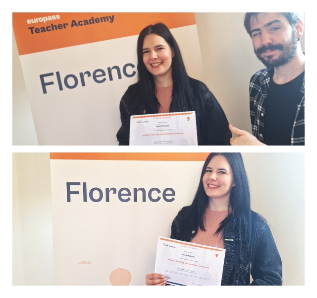 Matijana Đuka, učiteljica engleskog jezika, sudjelovala je na tečaju pod nazivom „Inclusive Teaching with Artificial Intelligence“, koji se održao u Firenci od 2. do 7. ožujka. Tečaj je bio u organizaciji Europass Teacher Academy, pod vodstvom Riccarda Mannija, edukatora i učitelja talijanskog jezika.