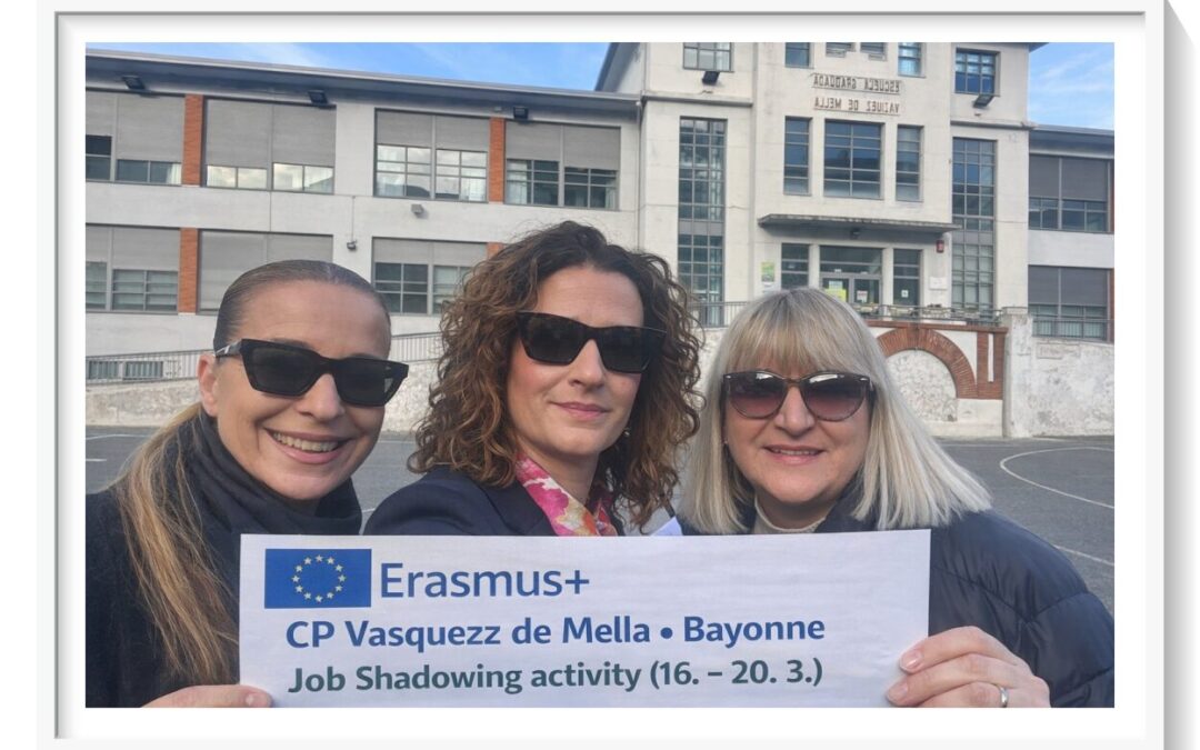 Od 16. do 20. ožujka 2026. godine učiteljice Katarina Ćošković i Vanja Selak te pedagoginja Marijana Dragobratović sudjelovale su u aktivnosti job shadowinga u Pamploni, u školi CPEIP Vasquez de Mella-Bayonne, u sklopu Erasmus+ akreditacije.