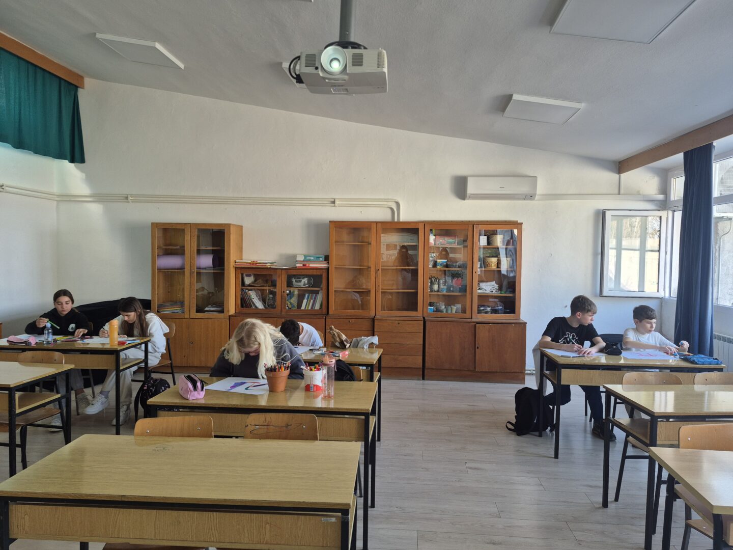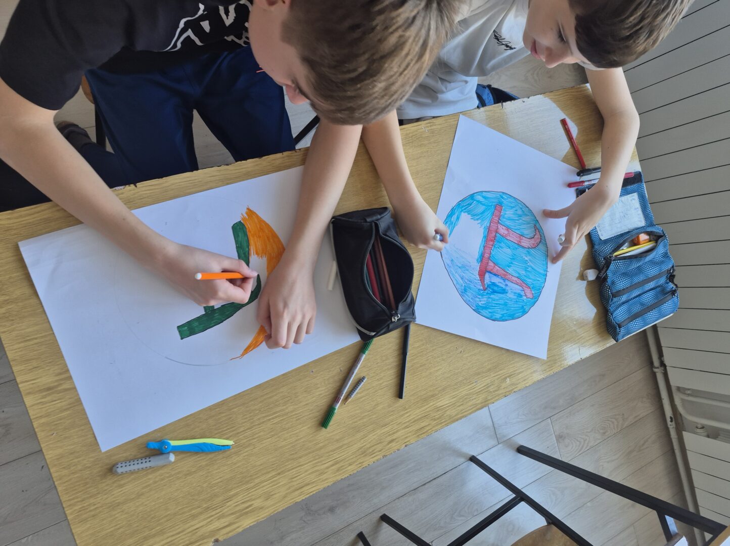 Učenici 7. razreda su najprije kroz Kahoot kviz ponovili i provjerili svoje znanje o broju π. Pitanja su bila povezana s osnovnim činjenicama o ovom iracionalnom broju, njegovoj povijesti, značenju u matematici te zanimljivostima vezanim uz Dan broja π. Kviz je potaknuo natjecateljski duh i veliko zanimanje učenika. 6. razred je izrađivao logo sa simbolom π. Učenici su pokazali veliku kreativnost i maštovitost u osmišljavanju vlastitih dizajna, kombinirajući matematički simbol s različitim bojama, oblicima i idejama.