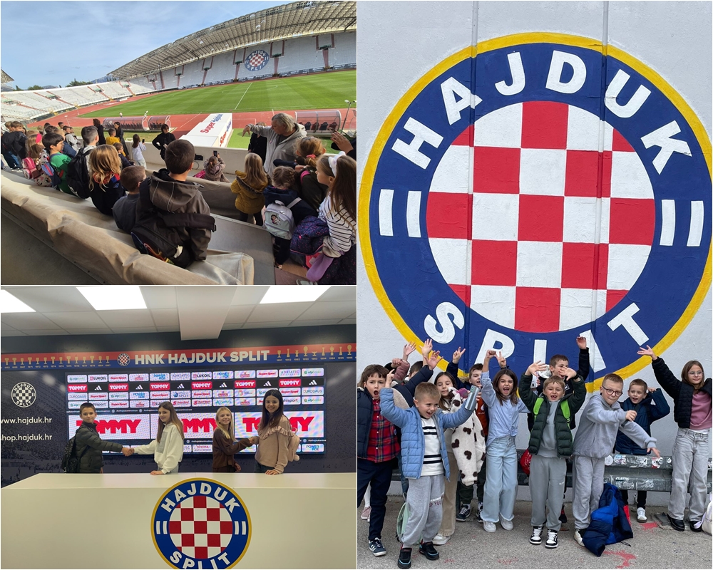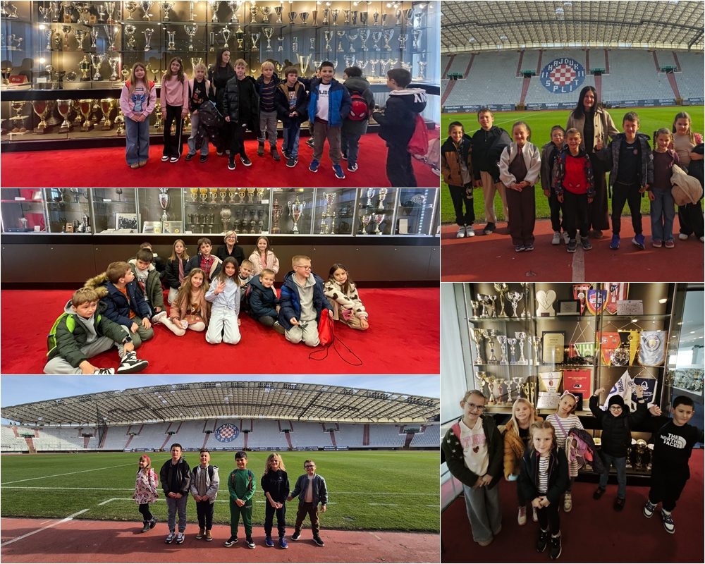 Nakon kazališta, učenici su posjetili Interpretacijski centar Poljud i Muzej Poljud, gdje su imali priliku upoznati bogatu povijest Hajduka i stadiona Poljud. Obišli su stadion uz stručnu pratnju, razgledali trofeje i naučili zanimljive detalje o slavnoj prošlosti splitskog nogometa.