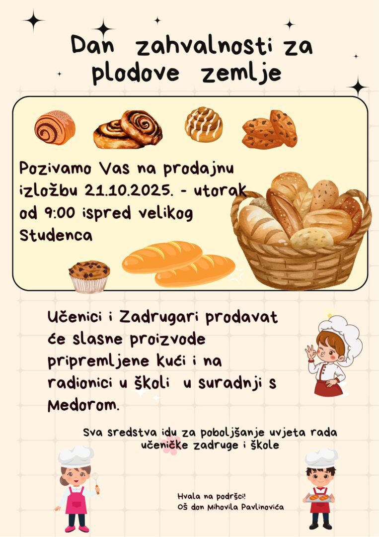 Prodajna izložba povodom Dana kruha i zahvalnosti za plodove zemlje by Tanja Kuran Kržanić | lis 17, 2025 | Naslovnica Učiteljica Katarina Ćošković
