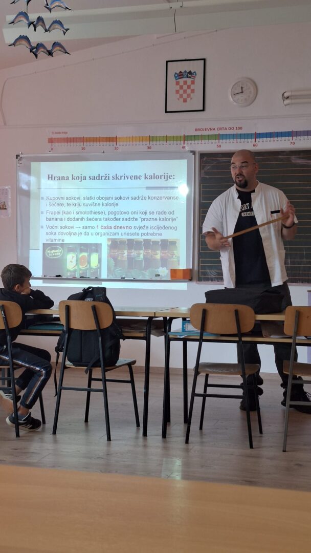 Medicinski tehničar održao je zanimljiva i poučna predavanja/radionice. Učenicima 1. razreda govorio je o važnosti higijene zuba te pravilnom održavanju oralnog zdravlja, dok je učenicima 3. razreda predstavio temu Pravilne prehrane, s posebnim naglaskom na skrivene kalorije u svakodnevnim namirnicama.