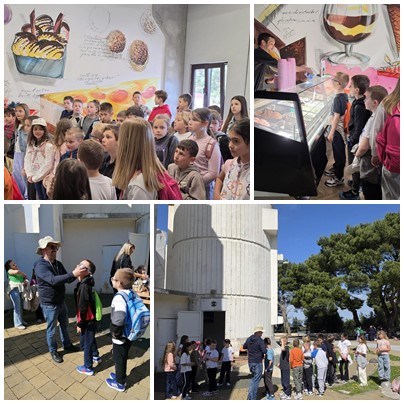 Povodom Dana planeta Zemlje, 22. travnja, učenici svih nižih razreda zajedno sa svojim učiteljicama prvo su posjetili tvornicu Premis. Tijekom posjeta poslušali su predavanje voditelja koji je na zanimljiv način pokušao objasniti učenicima kako se pravi sladoled. Nakon toga su svi bili počašćeni kuglicom sladoleda gdje su učenici zadovoljni otišli iz tvornice. Šetnjom preko rive stigli su do Zvjezdarnice. Stručni voditelj objasnio im je osnove astronomije na jedan jednostavan i razumljiv način. Učenicima je bilo zanimljivo gledati kroz crne naočale točno u Sunce gdje su vidjeli bijelu točku.  Penjali su se i na kupolu ali na žalost nisu mogli gledati teleskopom jer je bio dan. Puni utisaka šetnjom su krenuli do Osejave gdje je meteorološka postaja. Tu su također imali priliku upoznati se s instrumentima koji se koriste za mjerenje temperature, tlaka zraka, vlage i brzine vjetra. Stručno osoblje objasnilo im je kako se prikupljeni podaci analiziraju i koriste za izradu vremenske prognoze. Posebno im je bilo zanimljivo vidjeti kakao se promjene u atmosferi prate u stvarnom vremenu. Ovaj posjet im je pomogao bolje razumjeti važnost meteorologije u svakodnevnom životu. Učenici su kroz ovu nastavu potaknuli znatiželju, istraživački duh i interes za nova saznanja. Nakon svih posjeta sretni i zadovoljni su se vratili kući.