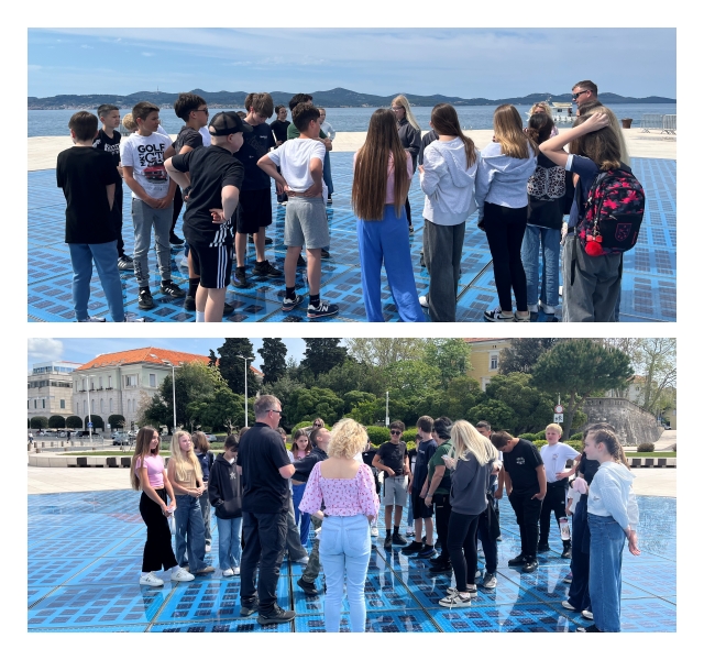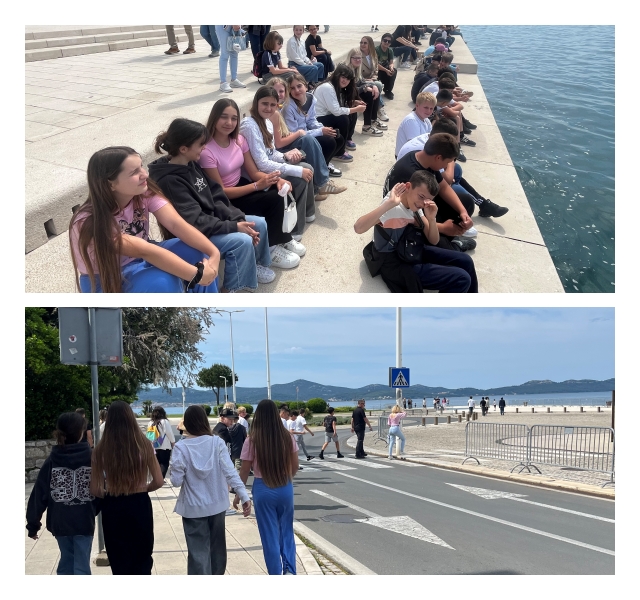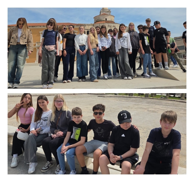 Avantura je započela u Zadru. Uz stručno vodstvo lokalnog vodiča, učenici su prošetali kroz povijest na svakom koraku. Razgledali su simbol grada – crkvu sv. Donata, divili se raskošnoj fasadi katedrale sv. Stošije te naučili legendu o Trgu pet bunara. Šetnja legendarnom Kalelargom dovela nas je do rive i trga. Posjet Zadru omogućio im je neposredan susret s povijesnom i kulturnom baštinom, dok su Morske orgulje i Pozdrav Suncu poslužili kao savršeni primjeri spoja moderne arhitekture i prirode.