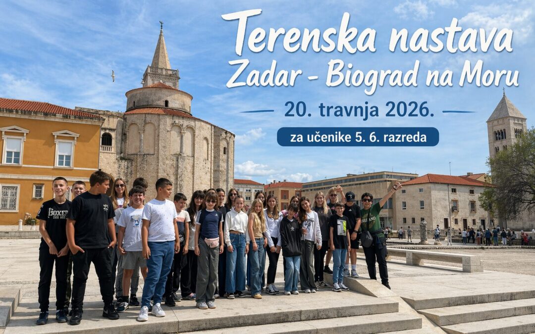 Učenici petoga i šestoga razreda, pod vodstvom razrednica Anite Lasić, Vanje Selak i učitelja pratitelja Estere Vranjković te asistentice Marije Čorić, proveli su ponedjeljak, 20. travnja, na nezaboravnoj terenskoj nastavi posjetivši Zadar i Biograd na Moru. Bio je to dan ispunjen učenjem o bogatoj hrvatskoj povijesti, ali i vrhunskom zabavom na otvorenom.